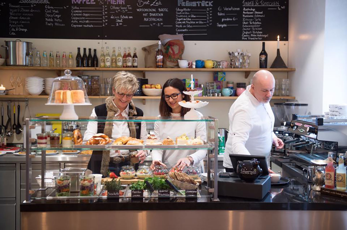 Geschäftsleute, die ihren Business-Lunch bei uns genießen, Handwerker, die mal eben auf eine Brotzeit reinschauen, Familien und Nachbarn – das Café Justus ist ein Treffpunkt für ein bunt gemischtes Publikum. Und alle fühlen sich pudelwohl!