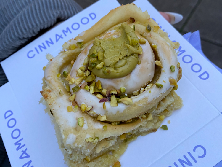 Neben klassischen Sorten wie Zimt, Nuss oder Blaubeere gibt’s hier unter anderem auch Oreo, Snickers, Pistazie oder das beliebte Cookie-Dough zu probieren. Die Ästhetik darf man dabei natürlich auch nicht vergessen: Aufwendige Verzierungen, Cremes, Glasuren und bunte Früchte machen die Cinnamon-Rolls zu einem echten Erlebnis. Wer gerade keine Lust auf Gebäck hat, kann sich außerdem auch einfach einen leckeren Iced Coffee oder Matcha Latte mitnehmen. Und gut zu wissen: vegane Roll-Optionen gibt’s natürlich auch!