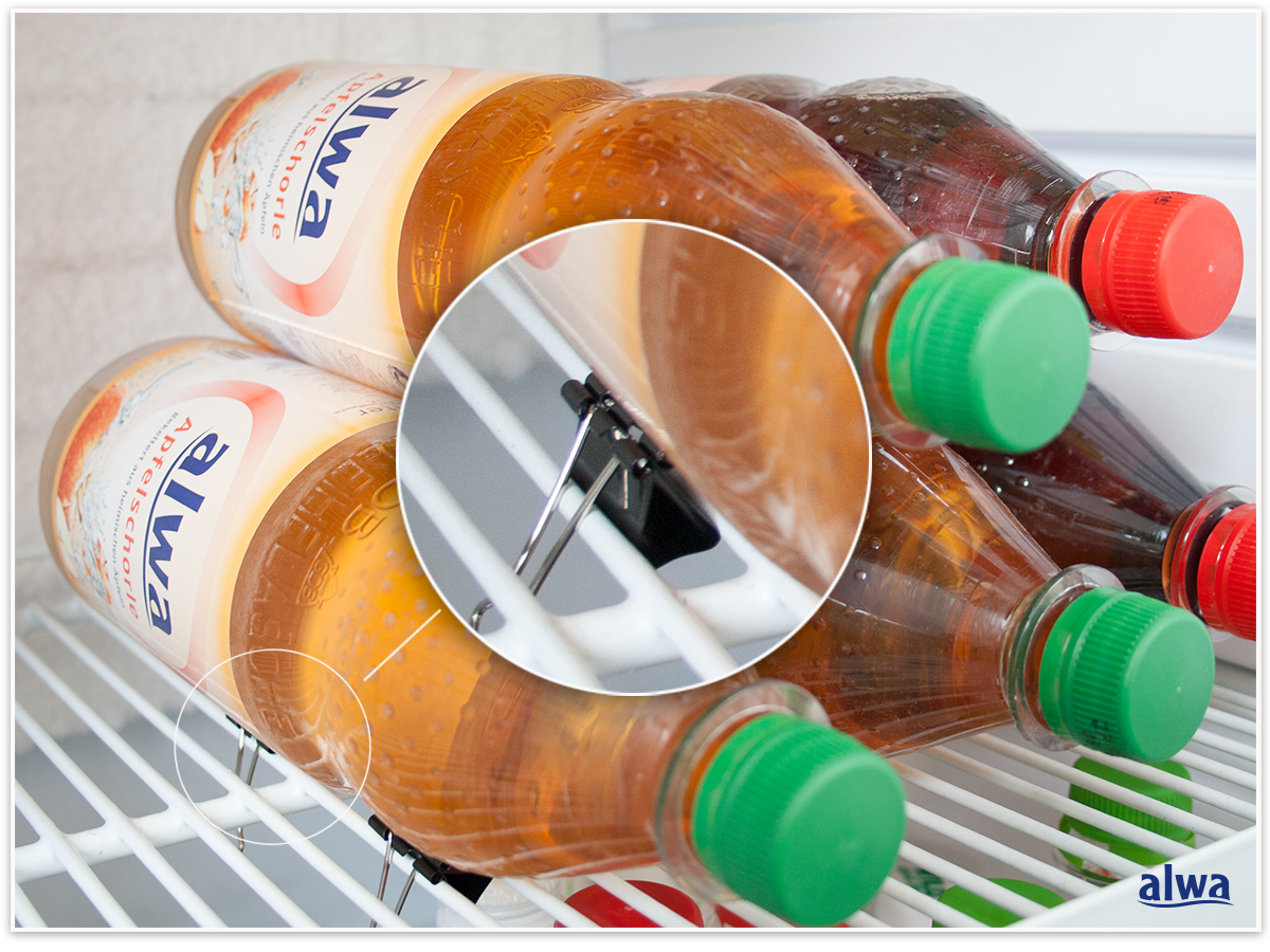 Übrigens, Apfelschorle schmeckt natürlich am Besten gekühlt. Hier ein Trick, wie ihr Flaschen im Kühlschrank mit Hilfe eines Foldback Clips in die Höhe stapeln könnt, ohne dass sie zur Seite rollen: