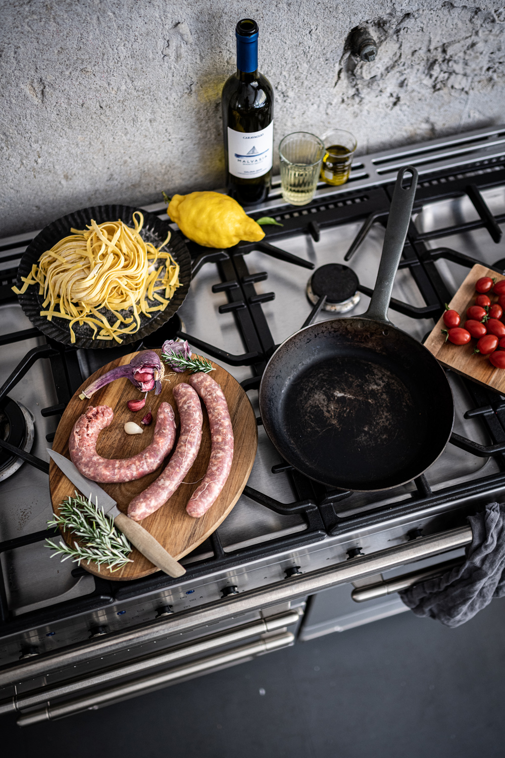 „Ich habe mir heute vorgenommen, mal das mediterrane Angebot der Markthalle zu entdecken. Kürzlich habe ich hier einen italienischen Stand mit hausgemachter Pasta und leckerer Salsiccia entdeckt, der mich zu einem schnellen Feierabend-Gericht inspiriert hat: Dank der frischen Nudeln ist alles in knapp zehn Minuten fertig!“ erklärt Christine Garcia Urbina ihr Vorhaben.