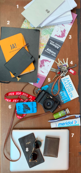 „Den Stadtplan aus Athen hab ich wohl seit Mai im Rucksack rumgetragen, als ich das letzte Mal da war. Wenn ich in Athen bin, laufe ich am liebsten stundenlang kreuz und quer durch die Stadt … Manchmal geh ich verloren und werfe einen Blick in die Karte.“