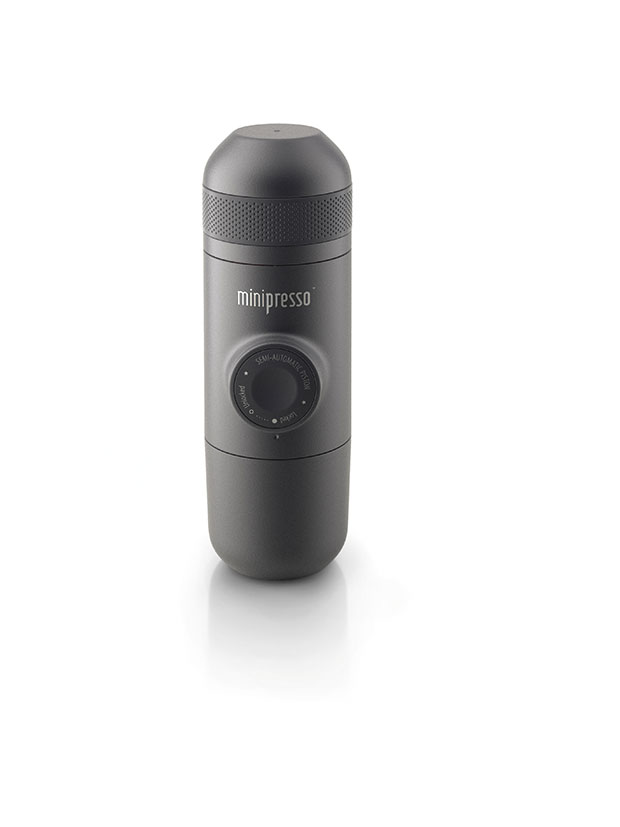 Wer auch beim Camping oder auf Reisen nicht auf seinen geliebten Espresso verzichten möchte, wird vom Minipresso von Wacaco durchaus angetan sein: Die kleine Espresso-Maschine ist gerade mal 15 Zentimeter hoch und wiegt weniger als ein halbes Kilo – handlich und passt in jeden Rucksack. Betrieben wird die Maschine durch eine eingebaute Handpumpe, die entsprechend Druck aufbaut. Nun fehlen nur noch heißes Wasser und Kaffee-Pulver oder -Kapseln zum perfekten Genuss – jederzeit und überall.