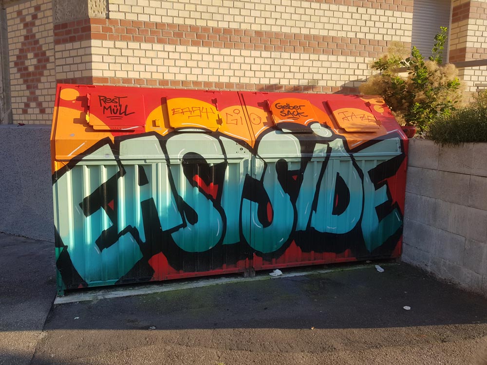 Vorbei an Apotheke, Bäckerei und Drogeriemarkt laufen wir direkt auf den angesagten Foodspot Vietal Kitchen zu und schauen ein paar Nachwuchs-Influencern beim Portraitieren ihrer Bowls über die Schulter, bevor wir unseren Weg fortsetzen. Lieber lassen wir uns stattdessen ein paar Hausnummern weiter im portugiesischen Tasca im Feui über dem ehemals legendären Club „Feuilleton“ nieder und freuen uns über hausgemachte Aioli und frittierte Meeresfrüchte. Mit einem letzten Blick auf den am Ende der Straße thronenden Gaskessel streichen wir uns zufrieden über den Bauch und können zusammenfassend sagen: Unsere kleine Tour durch den Osten hat sich in jedem Fall gelohnt!