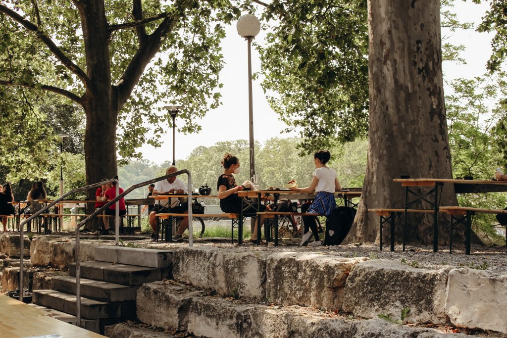 Nach einem ca. 30-minütigen Spaziergang am Neckar entlang erreichen wir Untertürkheim und stoßen auf das Inselbad. Direkt am Fluss gelegen, lädt das Freibad mit seinem fünfzig Meter langen Sportbecken, dem Sprungturm, der Wasserrutsche und diversen Beach-Volleyballplätzen zu einer willkommenen Abkühlung ein. Fun Fact: Das Inselbad gilt als Kulturdenkmal und wurde von den Architekten Paul Bonatz und Friedrich Scholer entworfen. Noch bis 12. September hat man also die Möglichkeit, in einem echten Denkmal zu schwimmen.