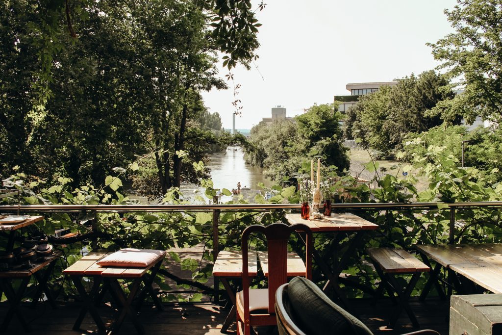 Direkt am anderen Ufer liegt der Neckarbiergarten. Dort sitzt man gemütlich mit Blick auf den Fluss und kann sich einmal quer durch die Speisekarte samt Käsespätzle, geschmelzten Maultaschen und Linsen mit Saitenwürstle schlemmen.
