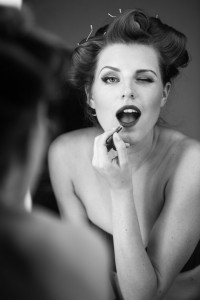 „Rote Lippen eignen sich wunderbar für einen glamourösen Festtagslook. Doch sie müssen sauber und perfekt geschminkt sein, damit sie elegant wirken. Dafür gibt es ein paar Tricks: zu allererst spielt die Grundierung eine wichtige Rolle, damit der Lippenstift gut hält und die Kontur sauber aussieht. Dafür eignet sich der „KissKiss Liplift“ von Guerlain ausgezeichnet! Ich gebe ihn auf die Lippe und die Lippenkontur, bevor ich mit einem (gut gespitzten!) Lipliner die perfekte Umrandung ziehe. Den Lippenstift selbst trage ich gerne mit dem Pinsel auf, da lässt sich die Menge der Farbe besser kontrollieren und gleichmäßiger verteilen. Damit der Lippenstift möglichst lange hält und nicht am Champagnerglas kleben bleibt, fixiere ich ihn mit dem „Artdeco Magic Fix“. Das ist ein absolutes Lippen-Must-have: es ist transparent und fixiert jeden Lippenstift (egal von welcher Marke oder in welcher Farbe), perfektioniert das Finish und macht ihn haltbar über Stunden, ohne die Lippen auszutrocknen. Kurz pinseln – und schon ist dein Lieblingslippenstift kussfest! Wenn die Lippen knallrot sind darf das restliche Make-up dezent im Hintergrund stehen. Bei Jana habe ich an den Augen mit den „Illusion d’Ombre“-Lidschatten Nr.81“Fantasme“ von Chanel noch einen silbrig-weißen Glitzerhauch gesetzt – winterlich zart und zugleich unschlagbar glamourös.“